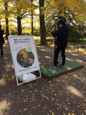 紅葉は銀杏が多く、こんな場所までセットされていました。