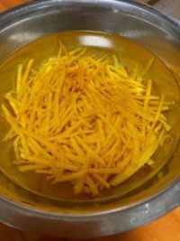 果汁たっぷり、薄く皮を切り湯がくこと3回、あとは水に浸して
